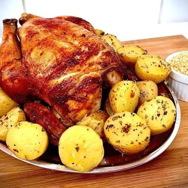 Frango Assado Com Farofa E Batatinha (tipo Calabre