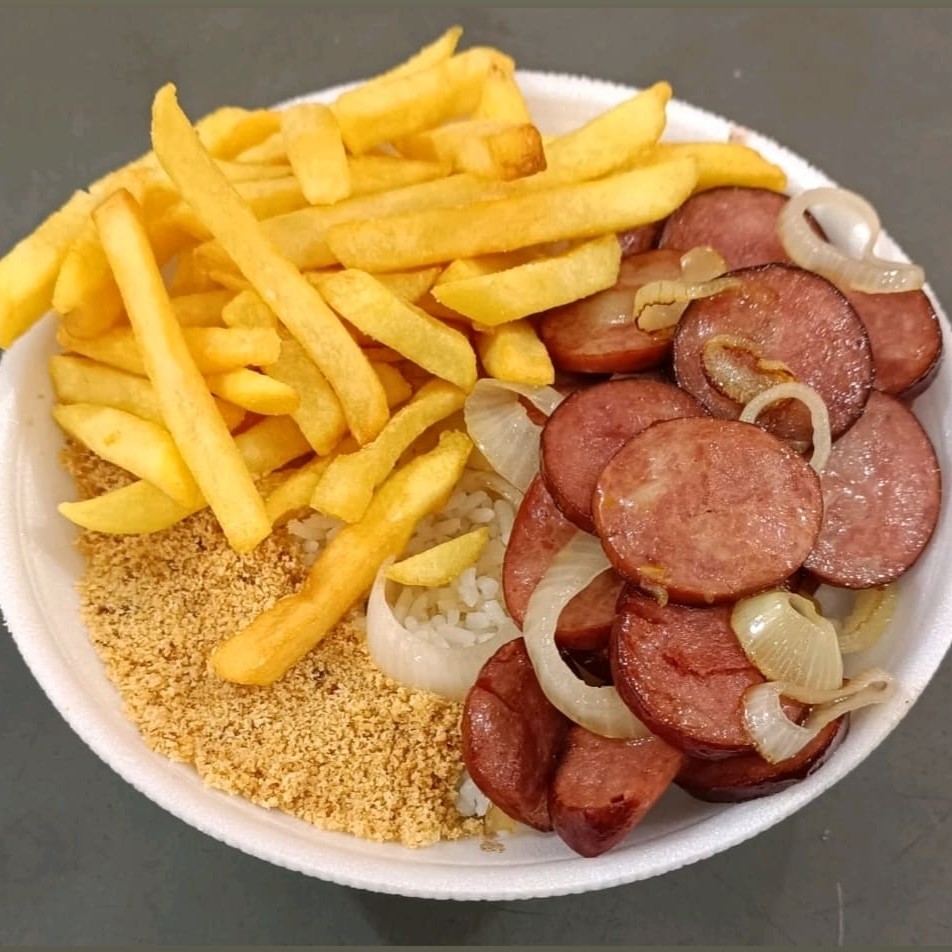 Quentinha Com Linguiça Calabresa Acebolada