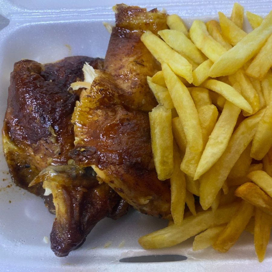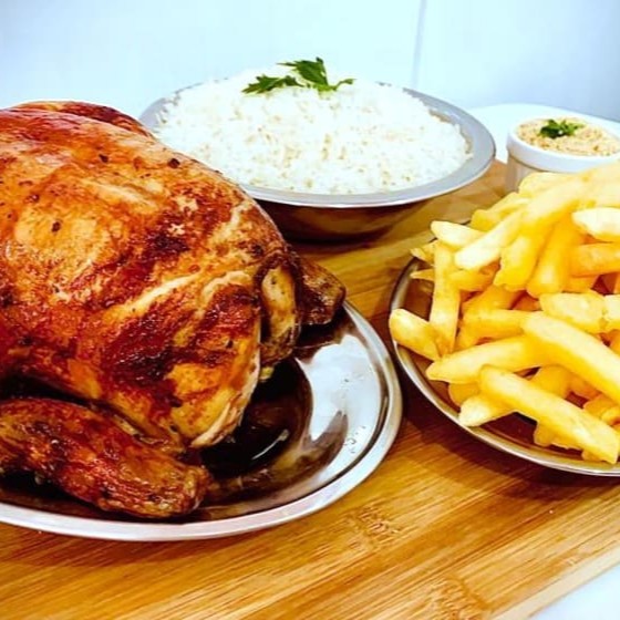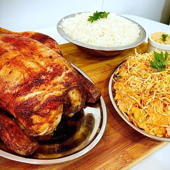 1 2 Frango Assado, 1 Farofa, 1 2 Arroz E 1 2 Frita