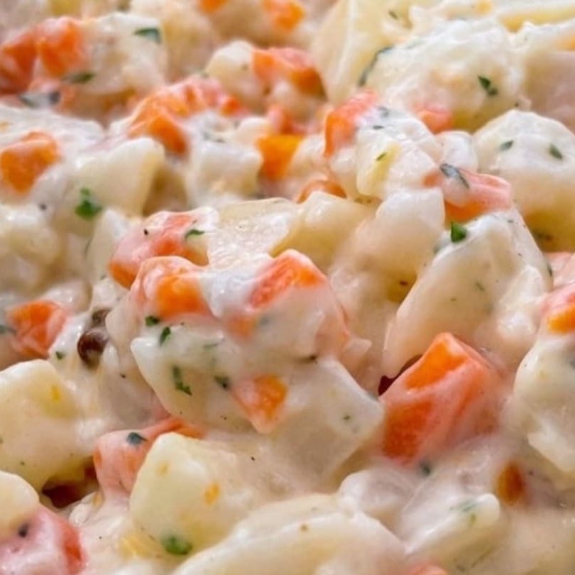 Descubra a irresistível combinação de sabores em nosso Salpicão! Este prato, classificado na categoria 'Guarnições', é meticulosamente preparado e, para finalizar, é generosamente acompanhado de uma camada crocante de batata palha. Uma opção leve e saborosa que certamente vai realçar o sabor do seu prato principal. O nosso Salpicão promete uma experiência gastronômica deliciosa e inesquecível!
