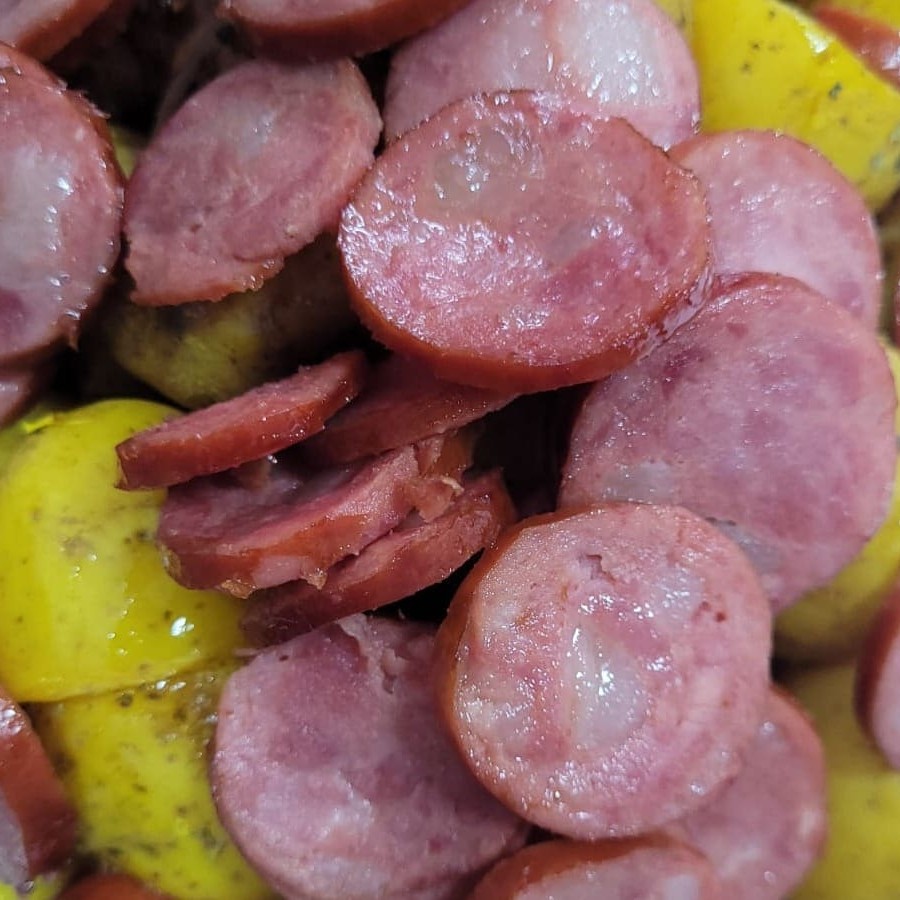 Desfrute de uma incrível porção de batatinhas, do tipo calabresa, perfeitamente cozidas e cheias de sabor. Acompanhadas de generosas fatias de linguiça calabresa, conhecida por seu gosto marcante e inconfundível. Para completar, uma porção de cebola fresca, que acrescenta uma textura crocante e um toque adocicado ao prato. Uma combinação divinamente equilibrada que resulta na guarnição perfeita pa