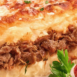 Delicioso escondidinho de costela desfiada com batata, aproximadamente 500g