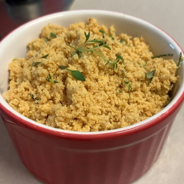 Farofa feita com mandioca crua,feita com alho e cebola