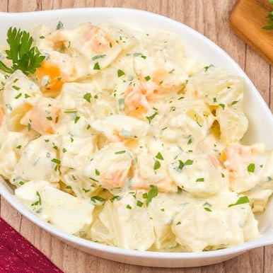 Batata inglesa e cenoura cortadinhas, maionese e um delicioso tempero caseiro