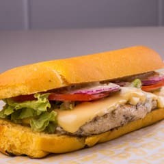 Pão artesanal super leve, hambúrguer com blend de aproximadamente 120g de carne exclusivo do fruto, muito queijo, alface, tomate, cebola roxa e molho da casa.