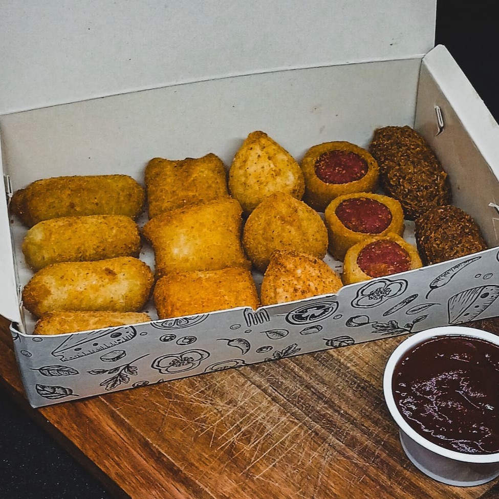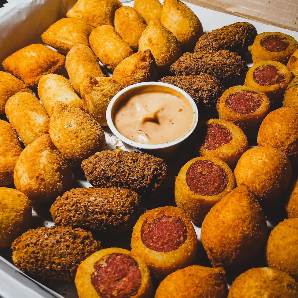 Escolha até 10 sabores preferidos! Nossos salgadinhos são grandes (20g) e bem recheados. Experimente e se surpreenda!
