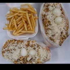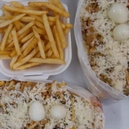 Carne,,calabresa,batata frita,pão de alho. Não leva frango