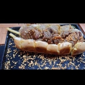 1 pão de alho recheado de carne.cebola