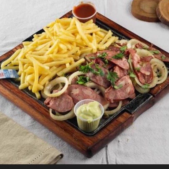 Calabresa com cebola e batata frita