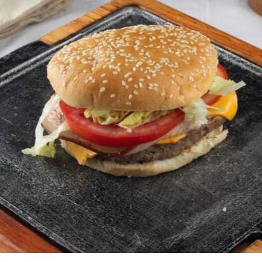 Pão,2 carnes,cheda,alface americana,tomate,sachê ketchup,mostarda e maionese