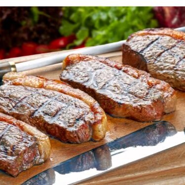 4 Bifes de Picanha - Acompanha: Arroz Branco, Fritas, Feijão Tropeiro, Vinagrete e Farofa.
