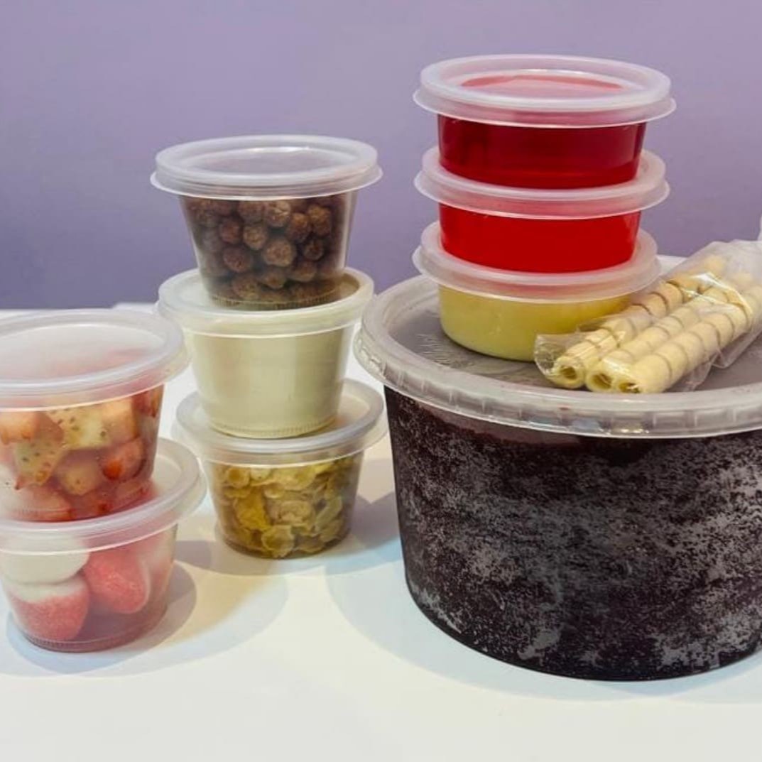 Escolha Somenta 4 acompanhamentos para o seu açaí +1 calda . Vão todos separados e você monta em casa.