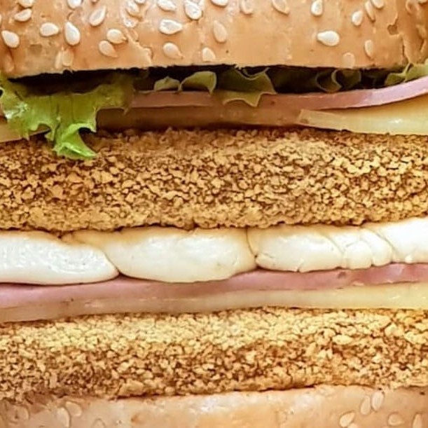 Pão, carne, queijo cheddar, queijo prato, Polenguinho e cheddar cremoso