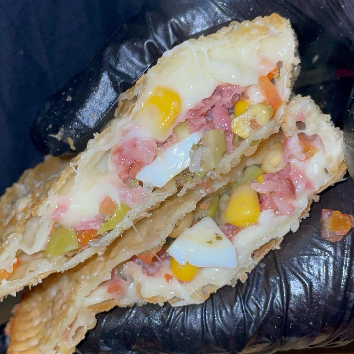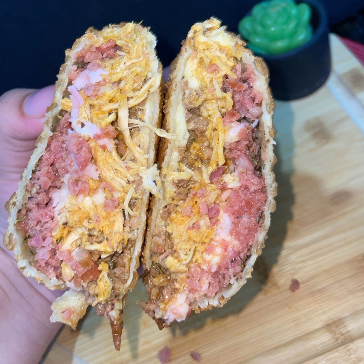 Carne, frango, queijo, bacon, calabresa, presunto e orégano