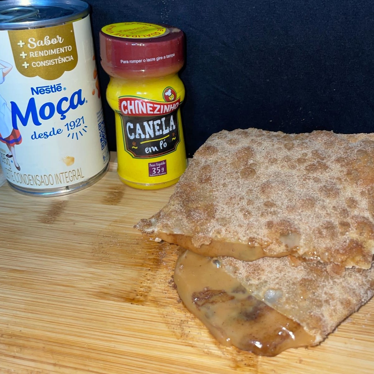 Recheio de doce de leite e por favor passado na canela com açúcar