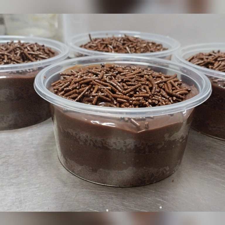 Copo Composto por Brigadeiro 50% + Brigadeiro de Leite Ninho Super Cremoso + Camadas de Brownie + Bombom Ouro Branco.