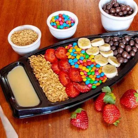Açaí no pote com direito a complementos nutella e frutas : MORANGO , BANANA , MANGA E UVA