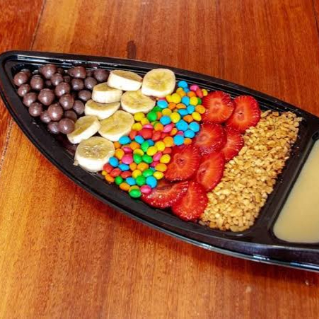 Açaí no pote com direito a complementos e frutas : MORANGO , BANANA , MANGA E UVA