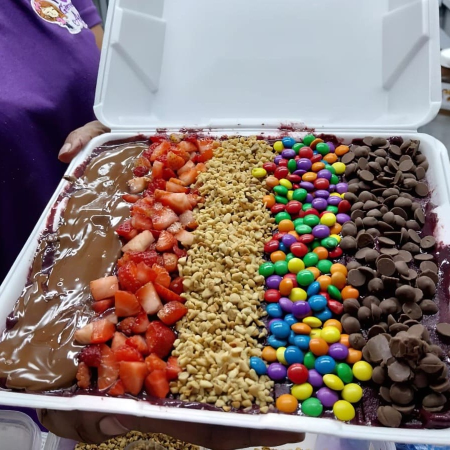 Açaí no pote com direito a complementos e frutas : MORANGO , BANANA , MANGA E UVA