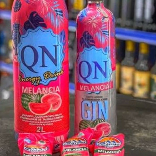 1 Energético Qn De Melancia, 5 Gelos De Melancia, 1 Gin Qn De Melancia, 2 Copos