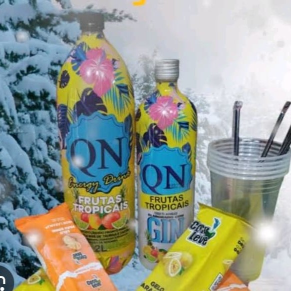 1 Energético Qn De Maracujá, 5 Gelos De Maracujá, 1 Gin Qn De Maracujá, 2 Copos