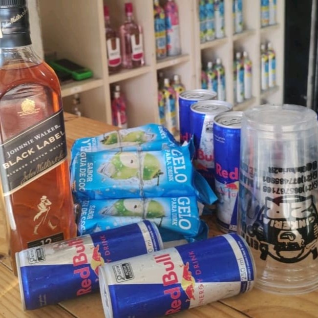 1 Black Label, 10 gelos, 5 redbul, 2 copos