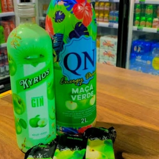 1 Energético Qn De Maça , 5 Gelos De Maçã, 1 Gin Qn De Maçã, 2 Copos