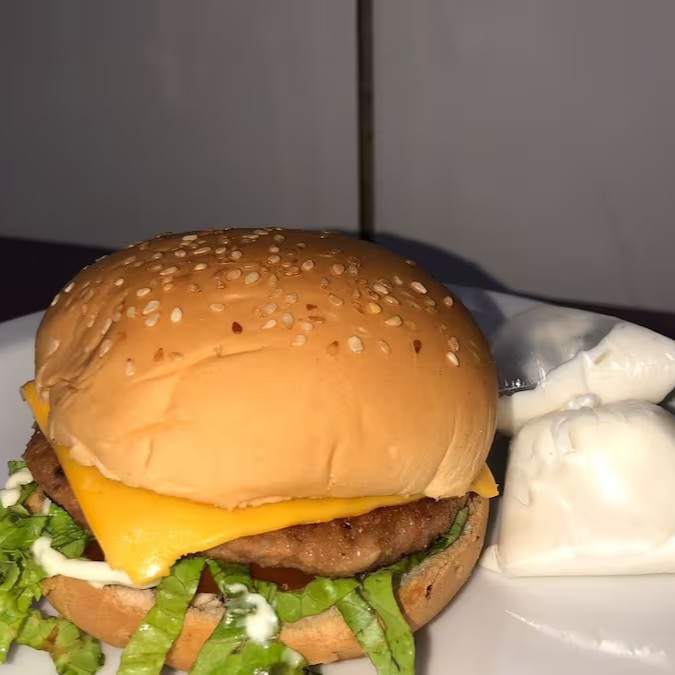 Pão de corte, Carne, Cheddar Cremoso, Alface, Tomate, Maionese
