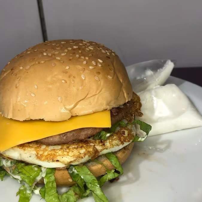 Pão de corte, Carne, Cheddar Cremoso, Ovo Alface, Tomate, Maionese