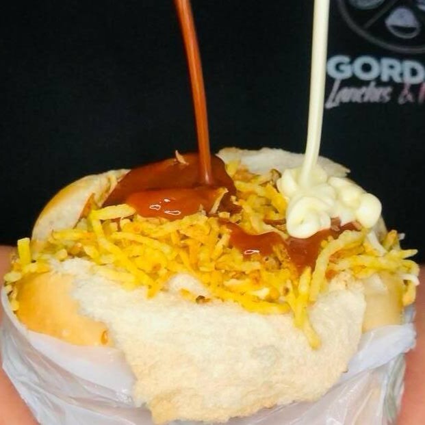 Pão, Carne, Cheddar Cremoso, Mussarela, Bacon, Calabresa, ketchup, Maionese e Batata Palha