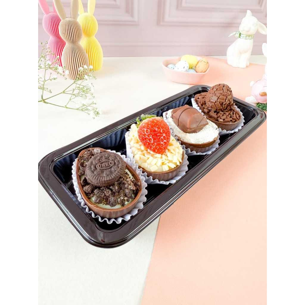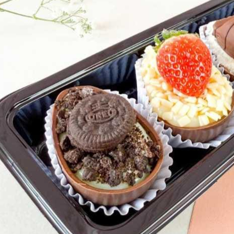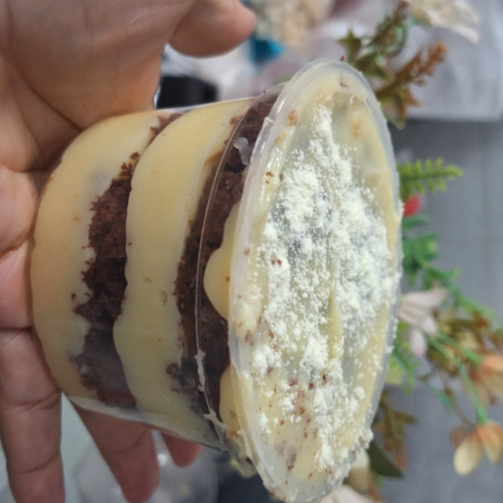 Uma camada de chocolate,creme de oreo,,brownie e biscoito, acabamento pode ser alterado