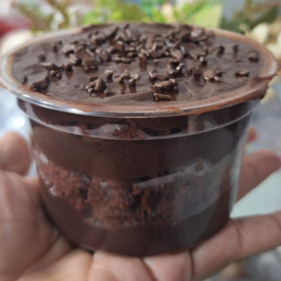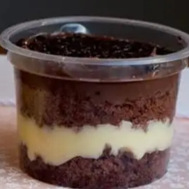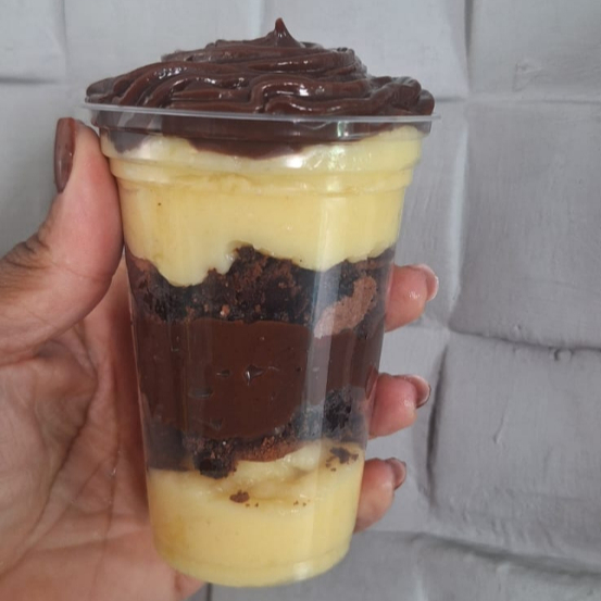 Delicia no pote, uma camada generosa de Brigadeiro gourmet, Brownie, outra camada generosa de brigadeiro de Ninho, e coberto com chantyli
