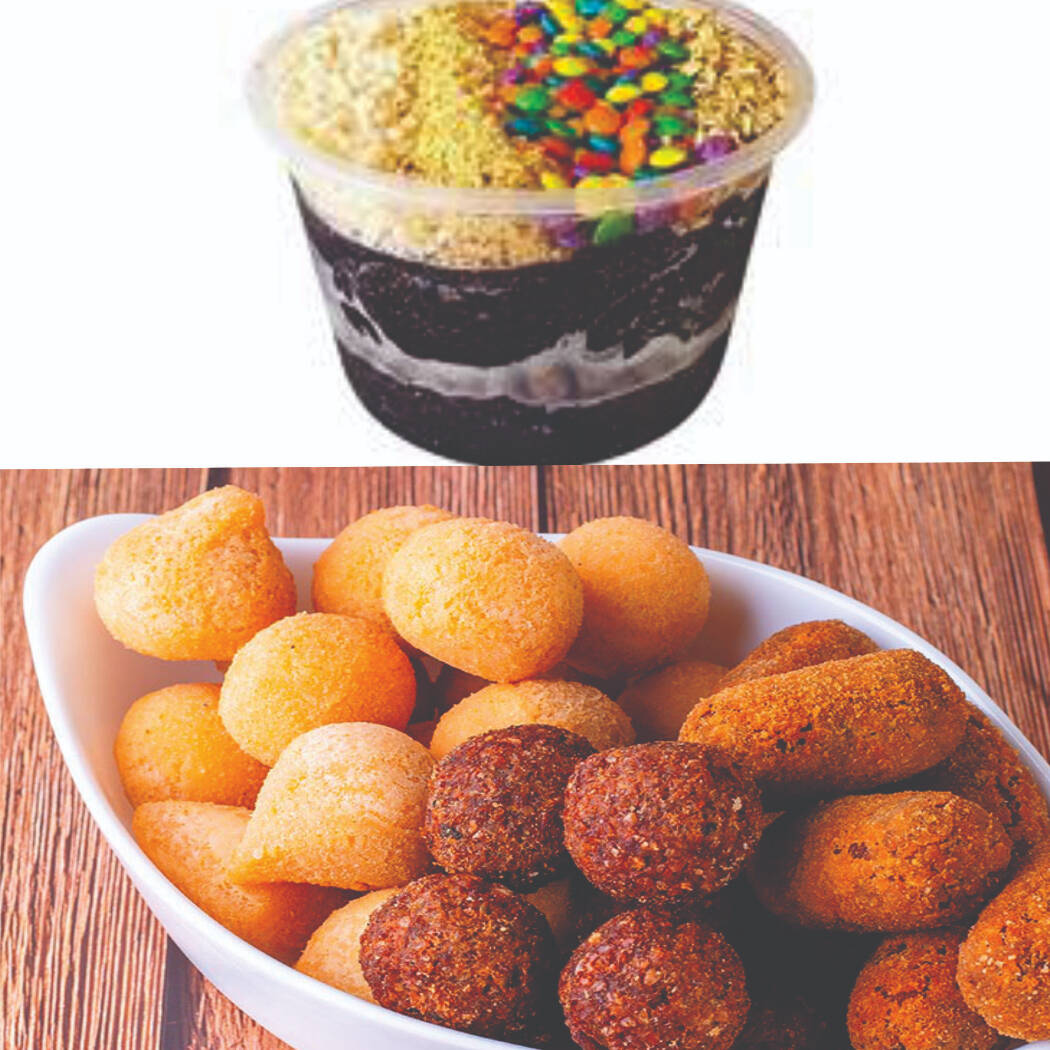 Esse combo e composto de 2 copos da felicidades , 2 bolos de pote, 4 coxinhas, 1 fatia, 1 empadão e 5 guaravita