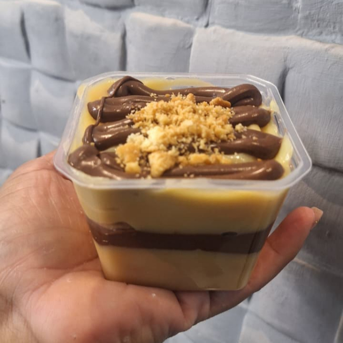 Pavê Duo – Brigadeiro & Ninho Camadas irresistíveis de creme de Ninho super cremoso e brigadeiro de chocolate, intercaladas com biscoito macio que derrete na boca. Finalizado com uma cobertura generosa de chocolate, esse pavê é perfeito para quem ama a combinação clássica que nunca erra. 🤎✨ Ideal para compartilhar… ou não 😋