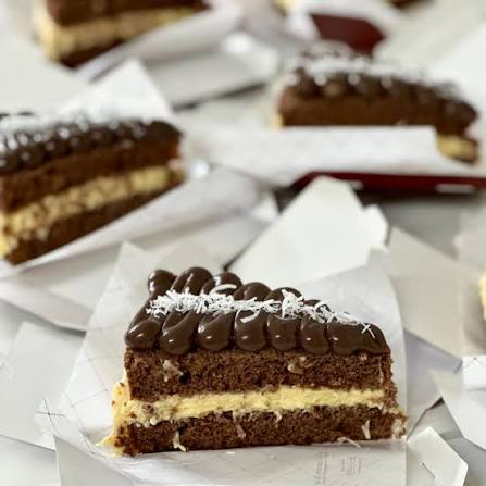 Torta Dois Amores – Ninho, Chocolatudo & Brownie Uma combinação perfeita para os amantes de chocolate! 🤎 Base de brownie macio e bem chocolatudo, recheada com brigadeiro de Ninho super cremoso e brigadeiro chocolatudo intenso, criando o equilíbrio ideal entre o doce suave e o chocolate marcante. Cada fatia é puro amor em forma de sobremesa! 🍰✨