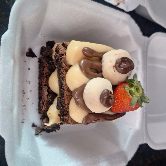 creme de ninho, geleia de morango, brownie e creme de chocolat