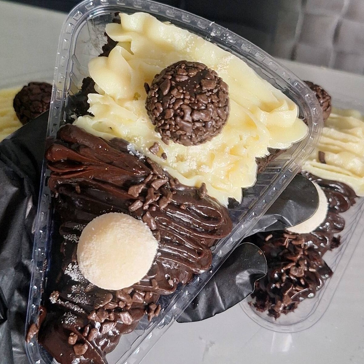 Torta Dois Amores – Ninho, Chocolatudo & Brownie Uma combinação perfeita para os amantes de chocolate! 🤎 Base de brownie macio e bem chocolatudo, recheada com brigadeiro de Ninho super cremoso e brigadeiro chocolatudo intenso, criando o equilíbrio ideal entre o doce suave e o chocolate marcante. Cada fatia é puro amor em forma de sobremesa! 🍰✨