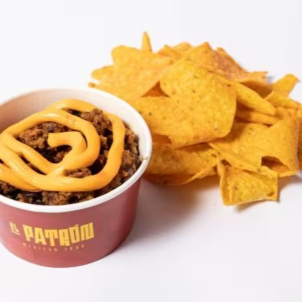 Molho Chilli con carne e feijão, cheddar, molho de pimenta e Tortilha tradicional de milho! Nível 1 de 5 de picância, é possível reduzir. Este prato pode ser sem lactose se você pedir com tortilla tradicional de milho e sem cheddar.