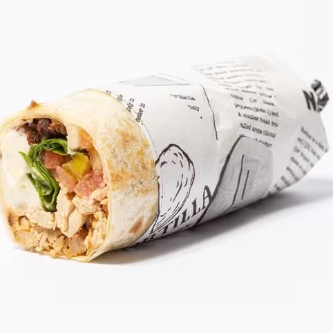 Tortilla de trigo, molho 4 queijos, frango, tomate, rúcula, bacon e molho de pimenta. Nível 1 de 5 de picância, é possível reduzir. *imagem meramente ilustrativa* - não acompanha guacamole e sour cream. O Burrito, que parece um wrap ou shawarma, é a marmita mexicana (carne, massa e salada), excelente opção de comida saudável para pedir no delivery. Costuma agradar o paladar daqueles que gostam da culinária brasileira. Pensou em pedir um sushi ou uma pizza? Que tal hoje conhecer um Burrito?