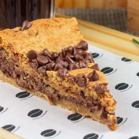 Fatia de Torta Cookie com muuuita Nutella, crocante por fora e irresistível por dentro.