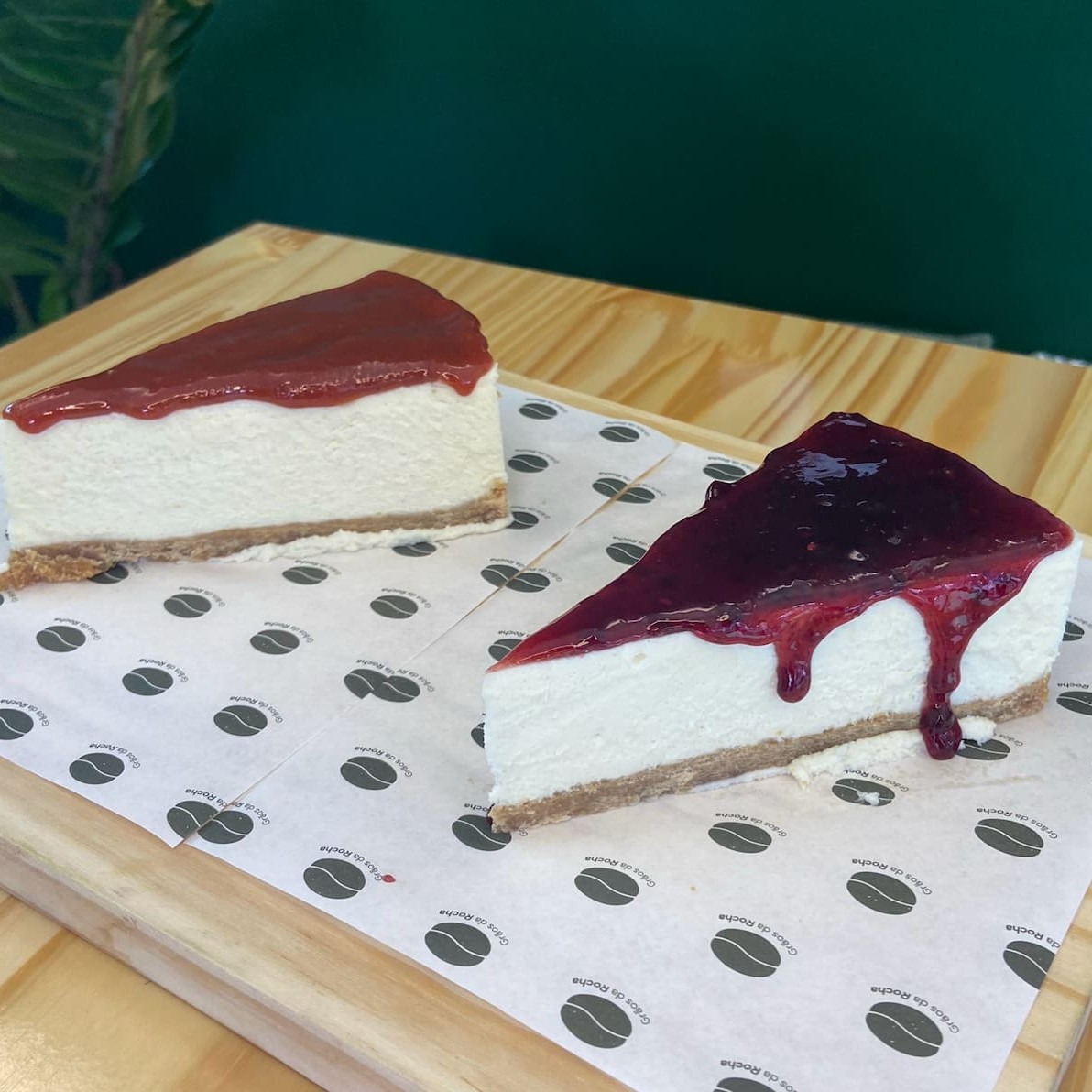 Fatia Torta cheesecake artesanal, base crocante e recheio cremoso