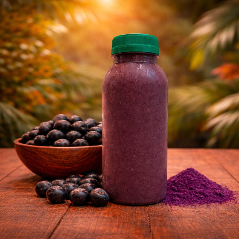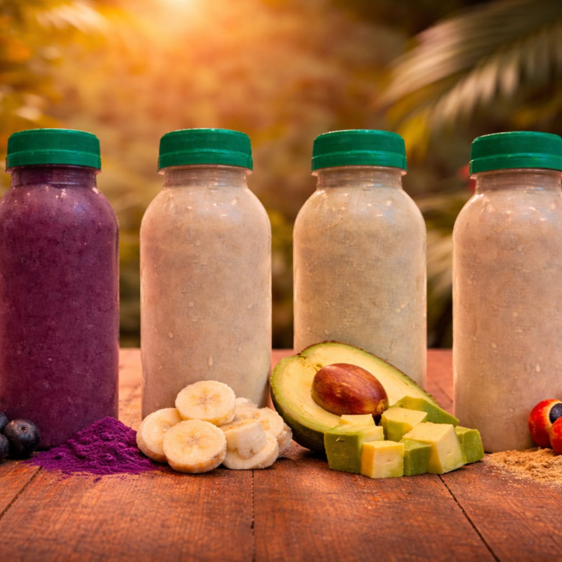 Shake com açaí, intenso, encorpado e marcante. Ingredientes: AMENDOIM, LEITE EM PÓ, CASTANHA, GUARANÁ EM PÓ, XAROPE DE GUARANÁ, AÇAÍ E GELO.