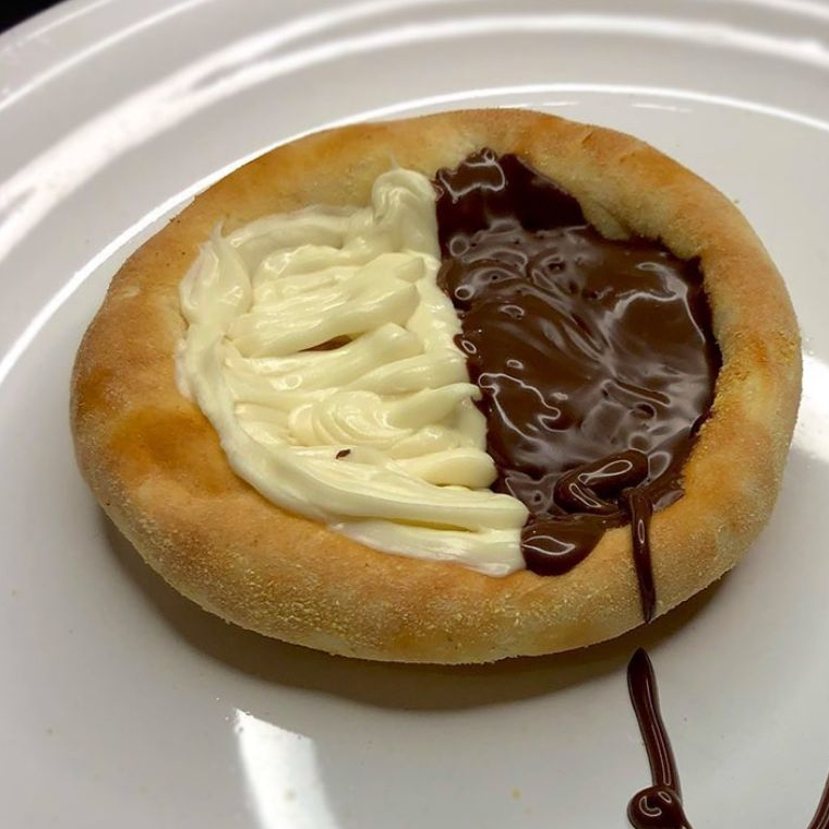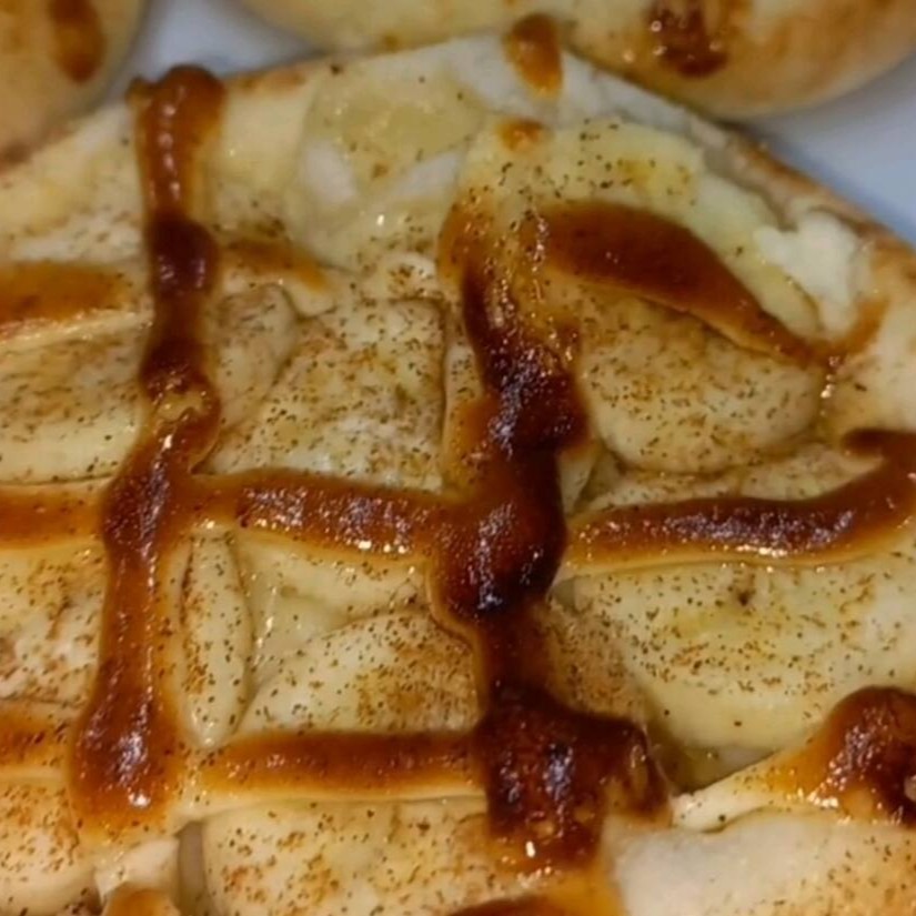 Banana, mussarela, chocolate branco e canela.
