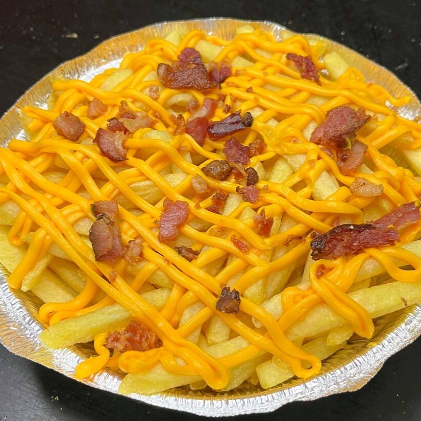 Batata frita, cheddar e bacon.