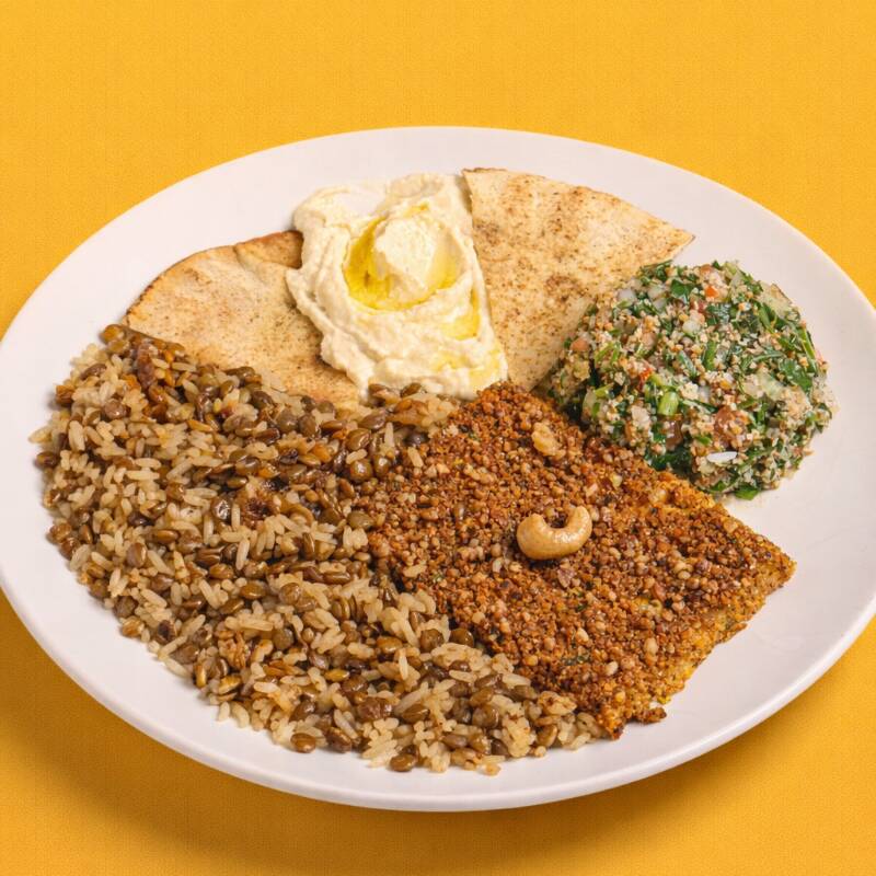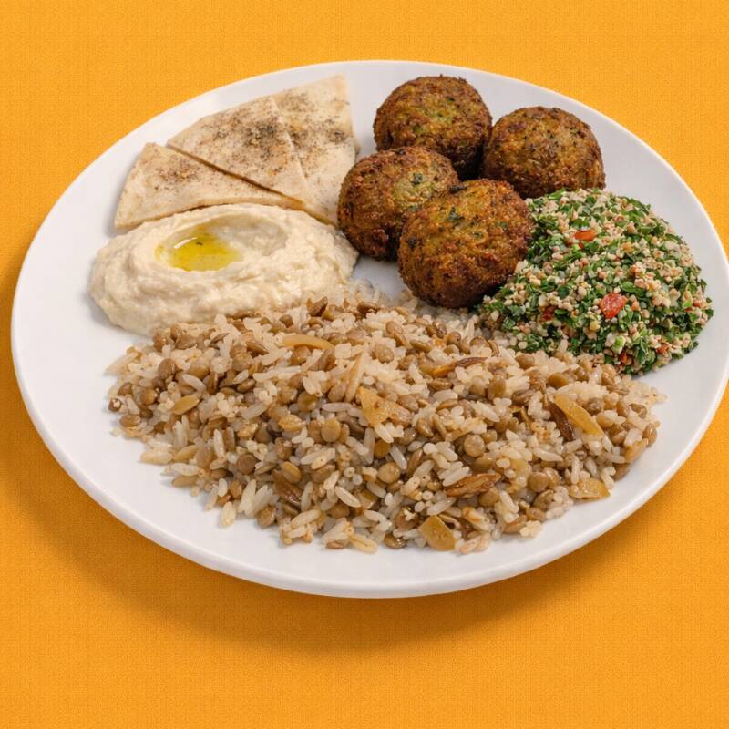 Vegano - Prato Com Falafel Salada Arroz Com Lentilha Hommus E Torradinha