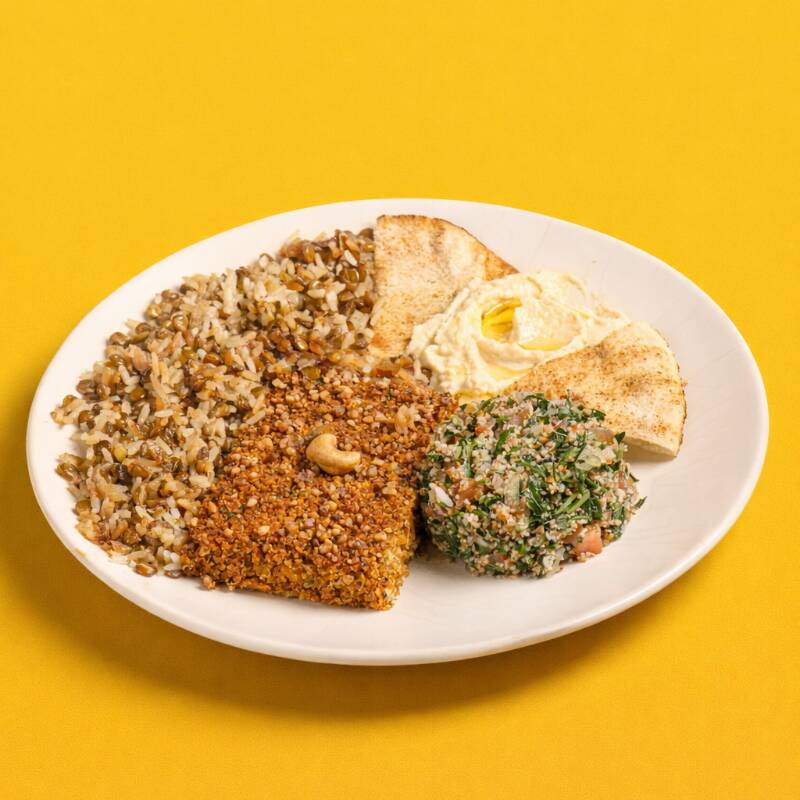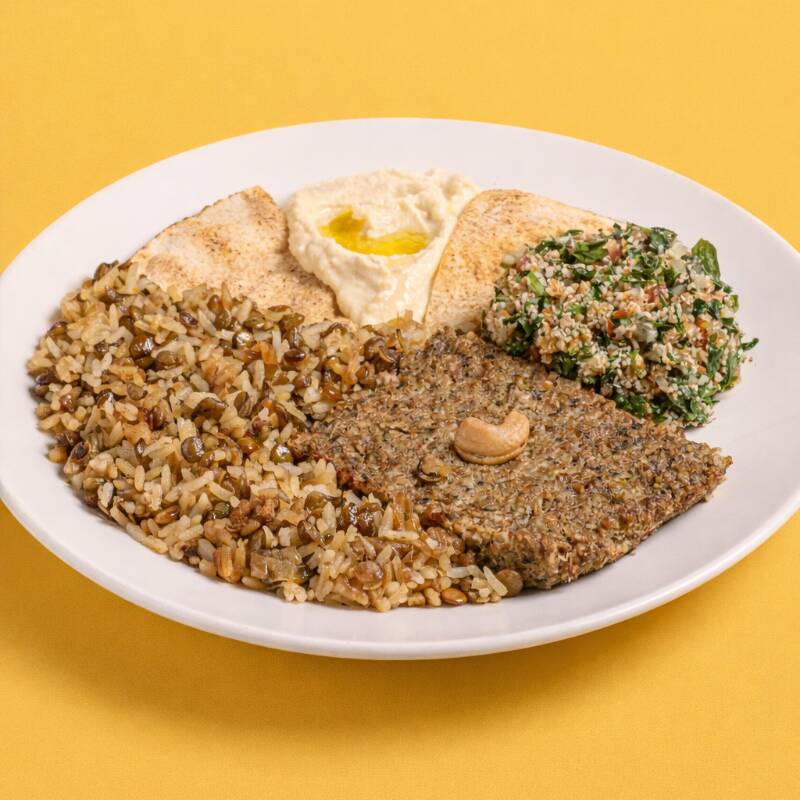 Delicioso prato com Quibe assado vegano, acompanhamentos: