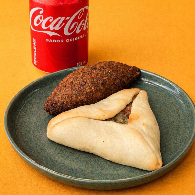 Combo Individual: 1 Esfiha Carne + 1 Kibe Frito + Bebida