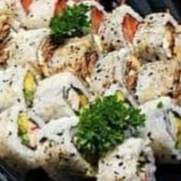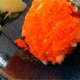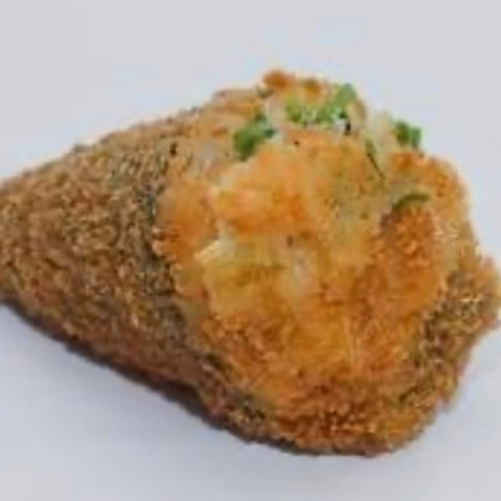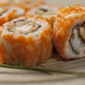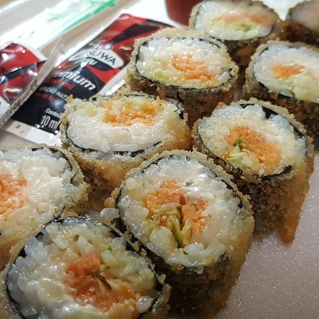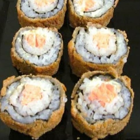 Roll feito com camarão empanado, cream cheese envolto com ovas de massago. (na ausência da ovas pode ser substituído com gergelim)