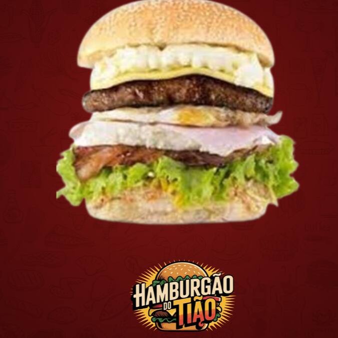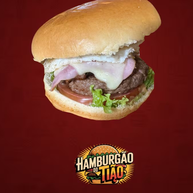 Pão de brioche, Carne, artesanal de 180g, alface, , bacon, presunto, queijo e ovo