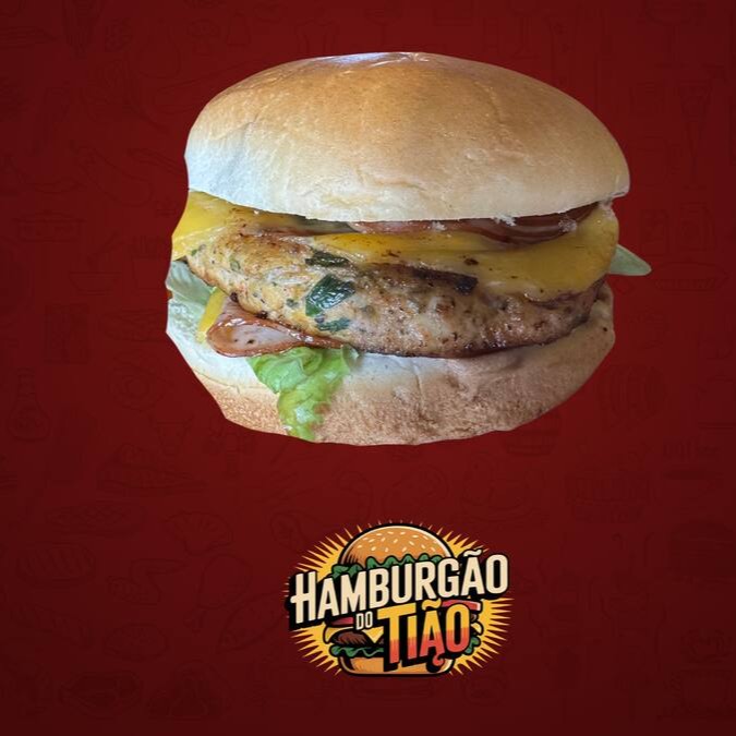 Pão brioche, 180 gr carne de filé de frango, ovo, salada, molho e bacon